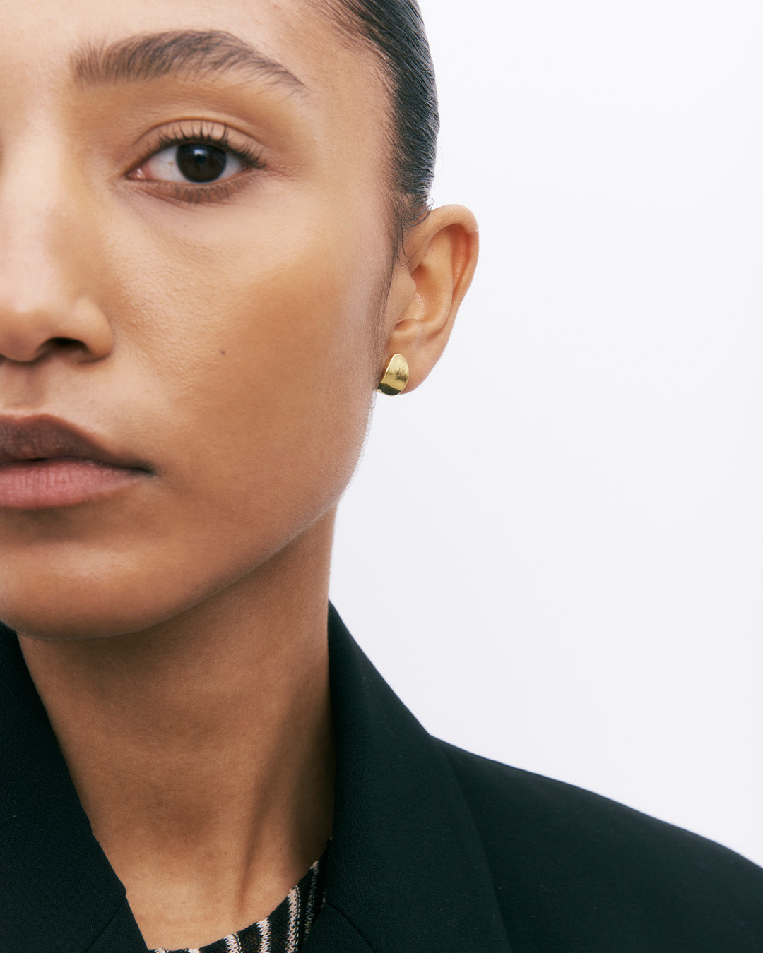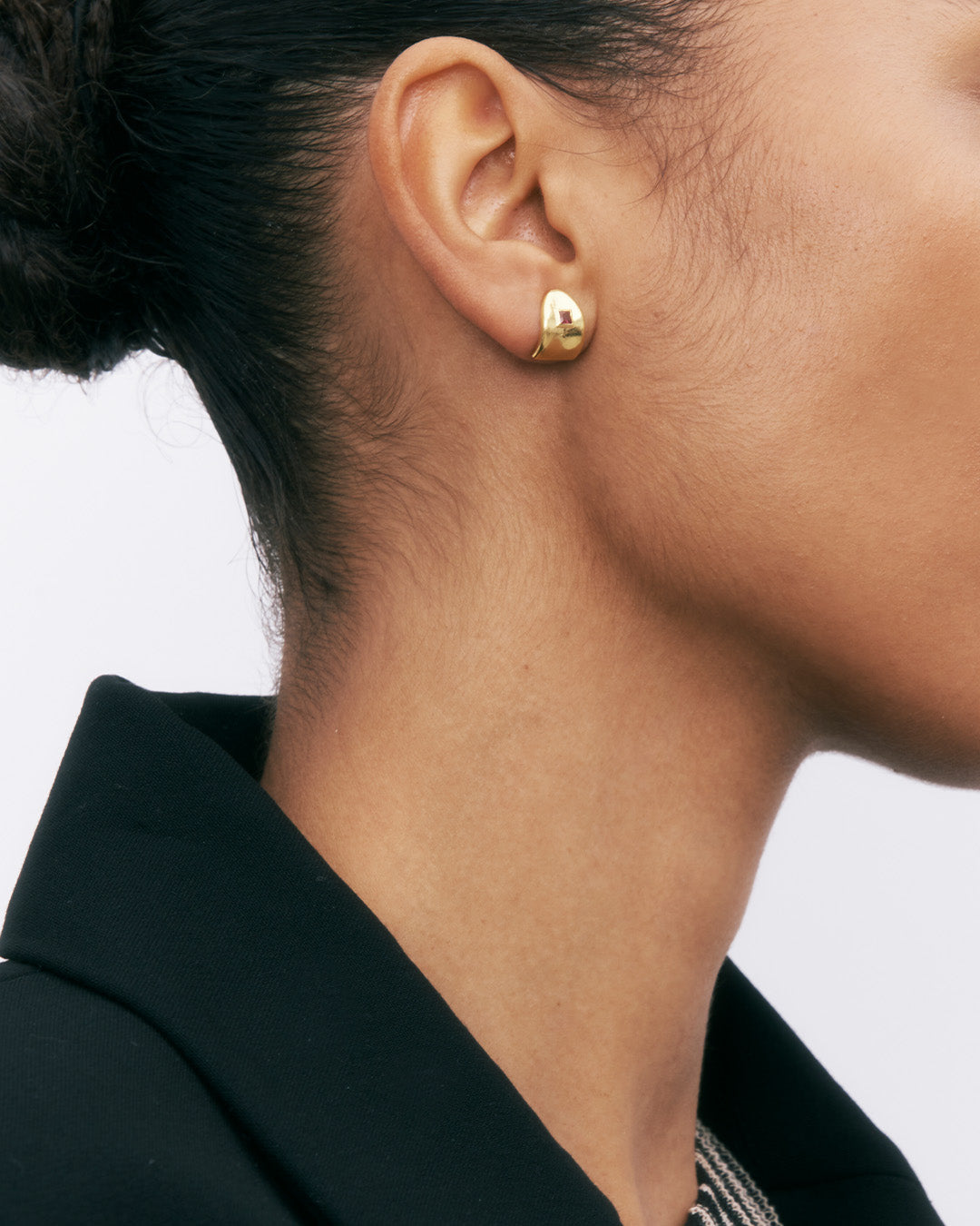 Os brincos de botão podem variar entre 0.5 e 4 cm. Geralmente brincos com 1 cm de diâmetro ficam elegantemente centrados.