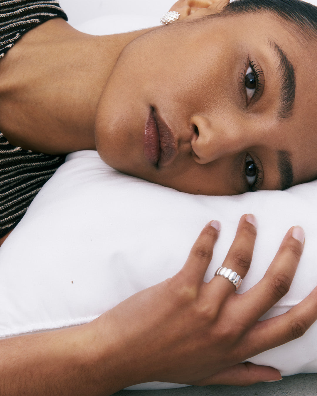 FORMA nasce do diálogo entre a prata e o artesão. Inspirada nas formas primárias que o metal assume nas suas primeiras fases de transformação, a coleção explora o equilíbrio entre intenção e acaso.