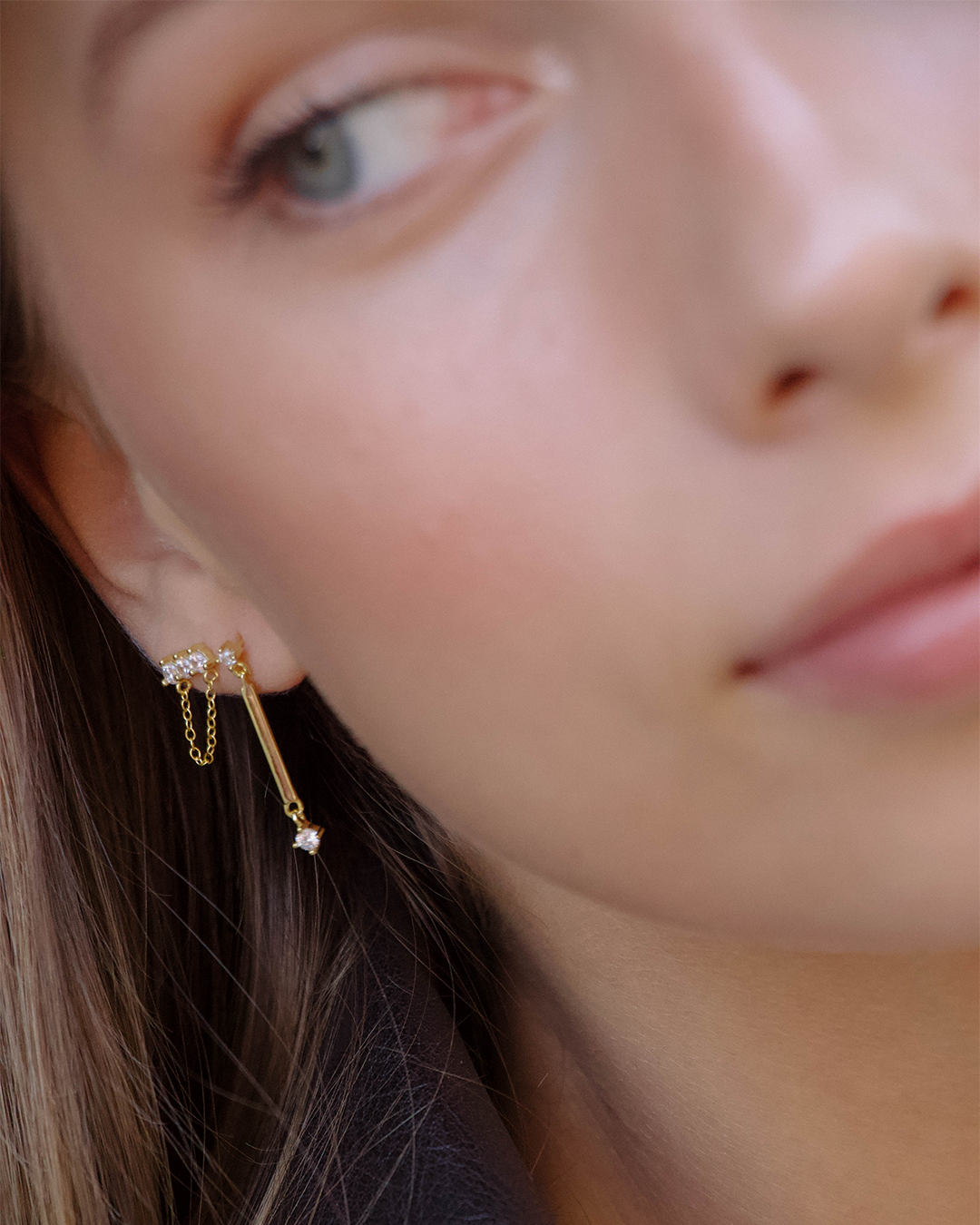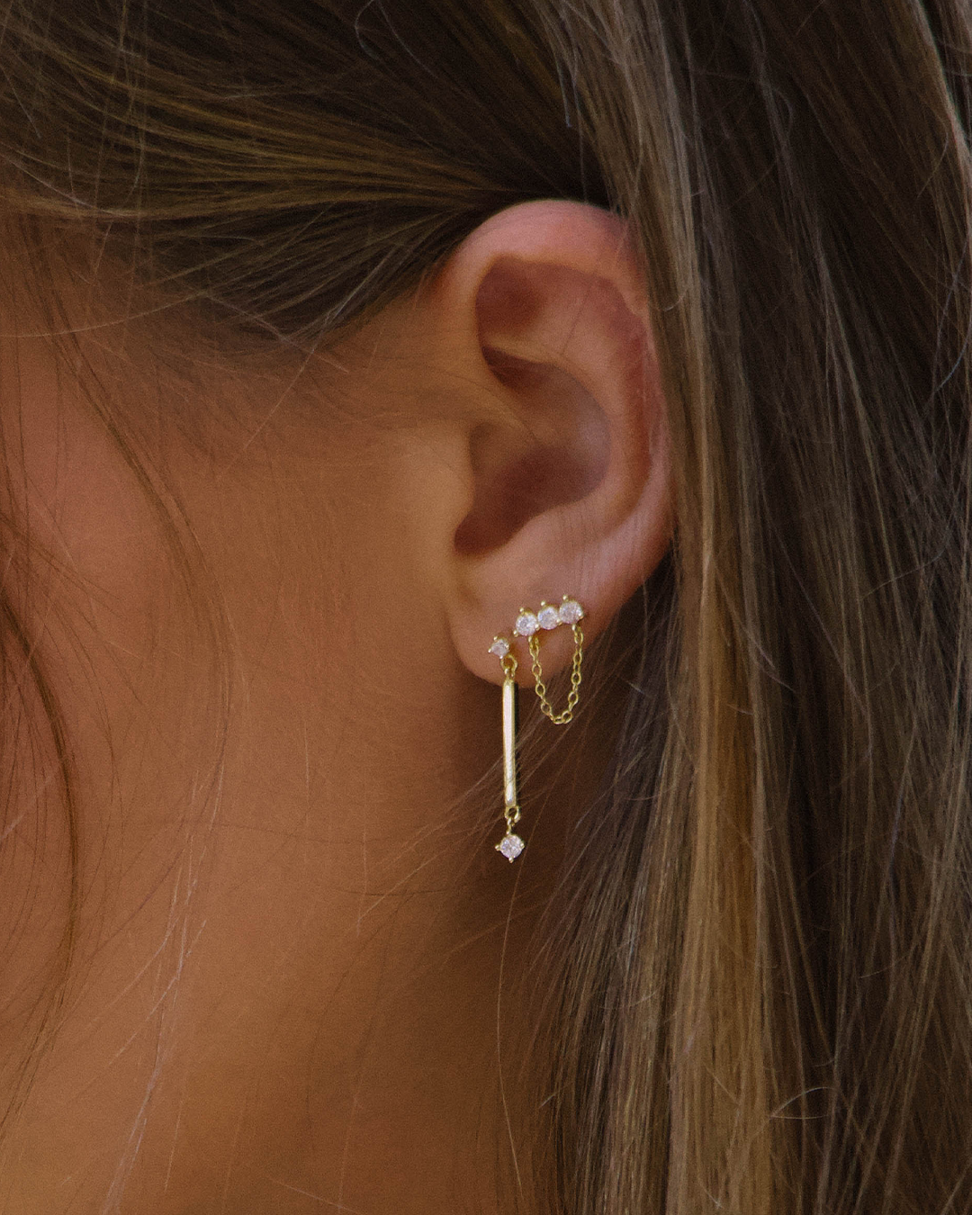 Brincos em prata 925 com banho de ouro 18k e zirconias.