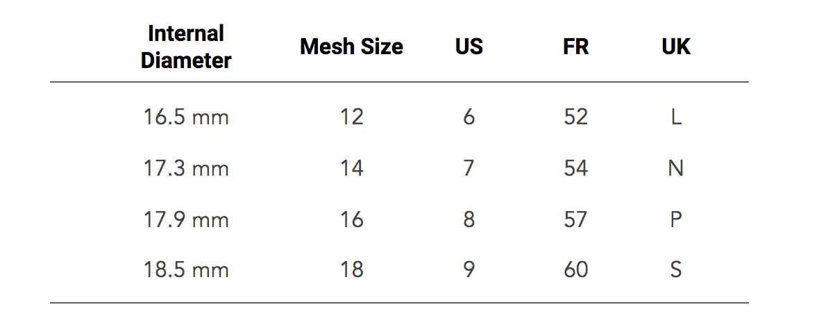 3. Compare with the table below to find the ideal size.