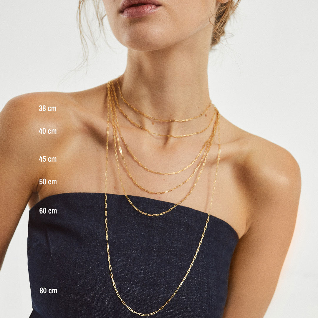 For bolder options, up to 18 cm, you should take into account the length of your neck and the weight of the earrings. Measure the distance between the hole and the end of the earrings in question beforehand.